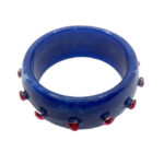 Brazalete único, hecho de plástico duradero y presentado con piedras rosas colocadas a mano una a una.